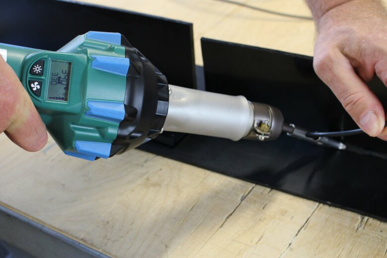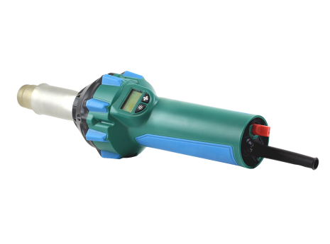 Det inbyggda displayen visar både inställd och aktuell temperatur för full kontroll under svetsningen. Temperatur och luftmängd kan justeras steglöst för att anpassas efter material och arbetsmoment.
