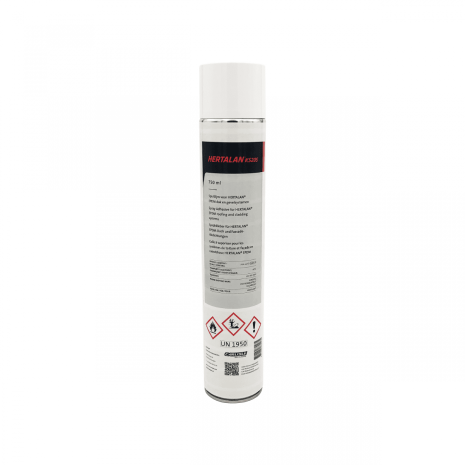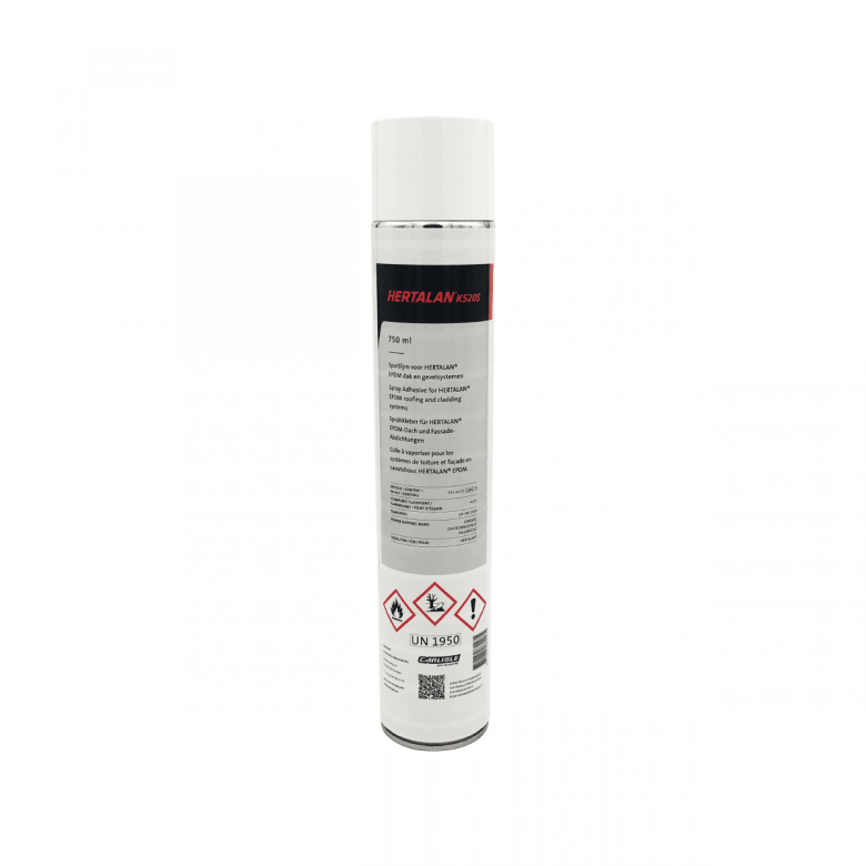 HERTALAN® KS205 är ett spraylim som säkerställer kraftig vidhäftning mellan EPDM-duk och den underliggande ytan. KS205 kan enbart appliceras med spray och kräver torra väderförhållanden med en temperatur på minst +5 °C. Både materialet och ytan som limmet appliceras på måste vara rena och torra. Låt KS205 torka i 0 till 20 minuter (beroende på temperatur och väder) tills limmet är beröringstorkt. När de belagda ytorna försiktigt pressas samman bör rynkor, luftbubblor, veck och spänningar undvikas.