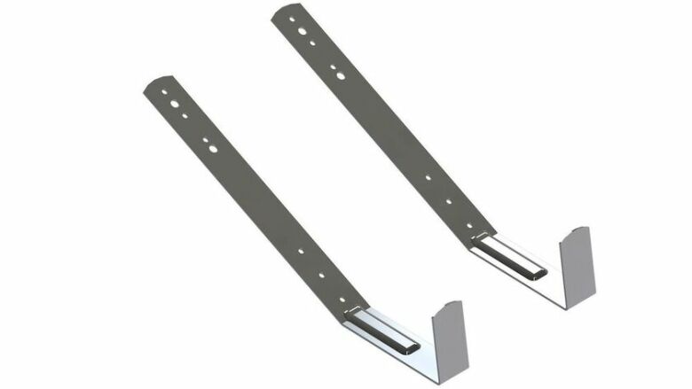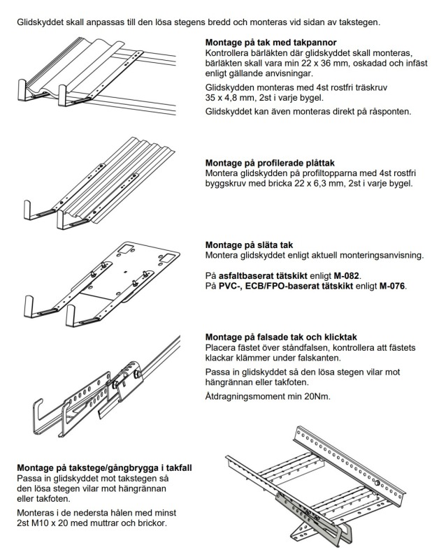 Glidskydd med skruv för takfot, tillverkat av varmförzinkat stål och klassificerat enligt Basta-standard med tydlig märkning.
