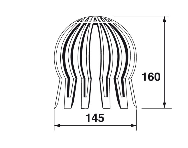 Polypropylen lövsilen är anpassningsbar för rördiametrar från 60 mm till 140 mm och erbjuder effektivt skydd för avloppsledningen mot löv och smuts när den installeras på takavloppet.