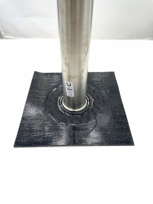 Takbrunnen är tillverkad av helt svetsade rör och monteringsringar i syrabeständigt rostfritt stål AISI 316 / EN 1.4401. Flänsen är gjord av bitumenmembran med en stabil bärande fläns i flexibel aluminiumväv, vilket erbjuder en hållbar och pålitlig lösning för takavvattning.