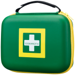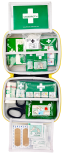 Första hjälpen-kitet är tillverkat av robust och slitstarkt material som ger effektivt skydd mot både damm och fukt, vilket säkerställer lång hållbarhet. Det är utrustat med ett praktiskt handtag som har justerbart kardborreband för enkel transport och hantering.