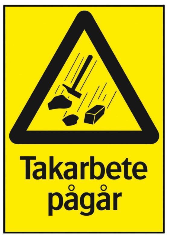 Denna varningsskylt mäter 210 mm i bredd och 297 mm i höjd och är tillverkad av hållbar plast för långvarig användning och maximal synlighet. Skylten är noggrant utformad för att klart och tydligt signalera att takarbete pågår. Med sin tydliga och lättigenkännliga design säkerställs både snabb upptäckbarhet och förståelse, vilket bidrar till en säkrare arbetsmiljö och effektiv kommunikation på arbetsplatsen.