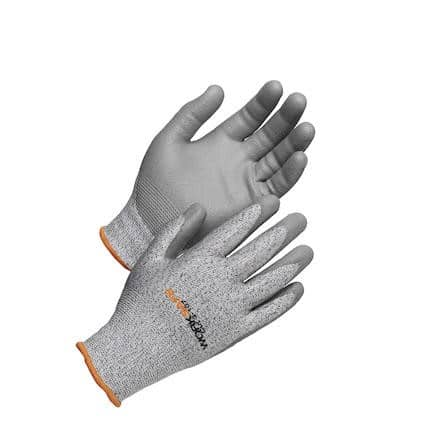 Skärskyddshandskar i storlek 10, designade för att erbjuda både komfort och skydd med PU-beläggning och skärskyddsnivå 5. Dessa handskar är idealiska för arbeten med hög risk för skärskador och har en ventilerande handrygg samt en sömlös liner för ökad komfort under hela arbetspasset.