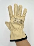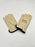 TC äkta läderhandskar beige svart kant stl L