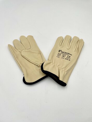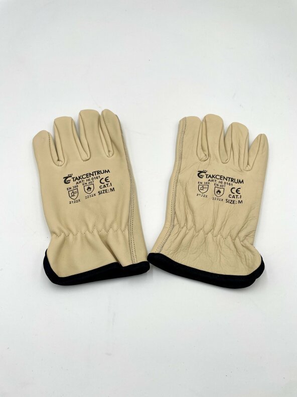Takcentrum svetshandskar i beige med svart kant finns i tre storlekar: S, M och L. Denna specifika artikel är i storlek Large och kombinerar hållbarhet med komfort.