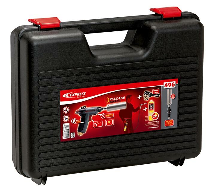 Den eleganta transportväskan rymmer Vulcane Express brännaren samt en rad tillbehör för handsvejsning, inklusive två propanpatroner. Detta gör produkten både kraftfull och mångsidig.