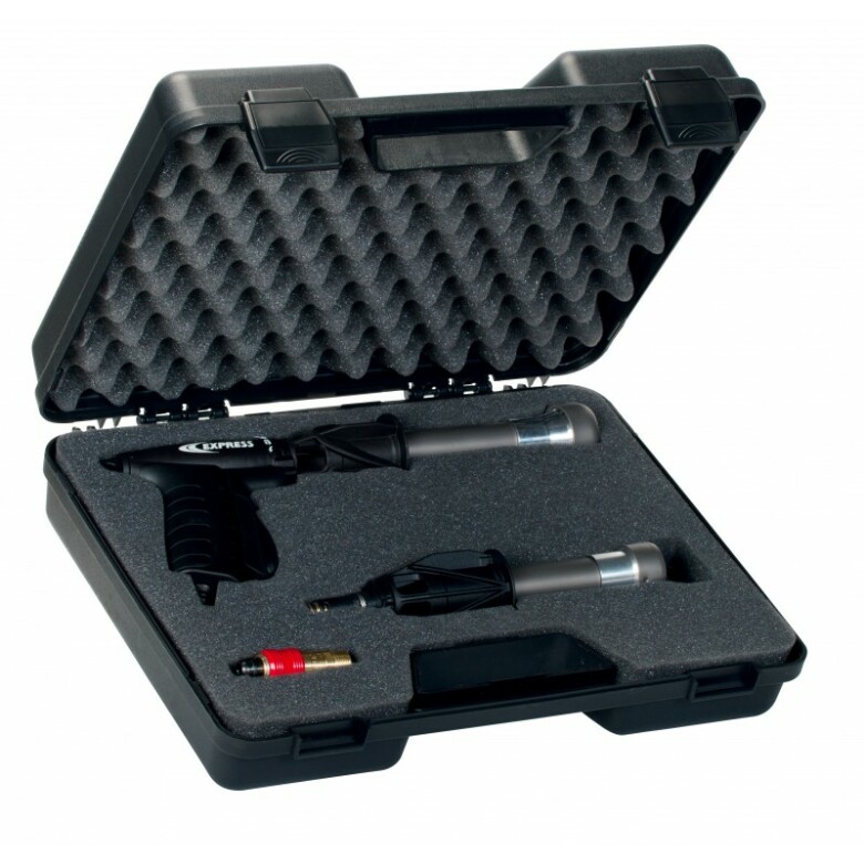 Express Raptor-brännaren finns i 70 kW och 90 kW varianter med piezotändning (modell 1029). Den levereras praktiskt i en transportväska för enkel hantering och smidig transport. Denna svetsbrännare är särskilt designad för arbete på höga höjder och utmärker sig genom sina högeffektslansar.