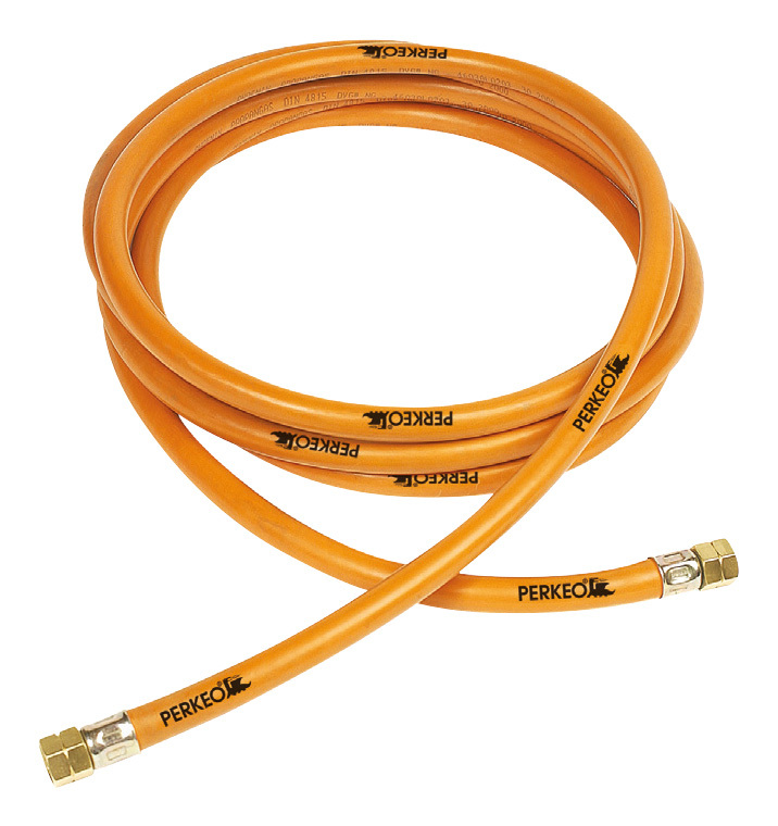 Perkeo gasolslang, 5 meter lång och utan regulator, levereras färdigmonterad med anslutningar och är DVGW-testad för att säkerställa hög kvalitet och säkerhet. Den är noggrant utformad för att passa perfekt med alla PERKEO-svetsbrännare och erbjuder pålitlig prestanda.