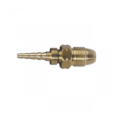 Denna slangbrottsventil stänger automatiskt av gasflödet vid slangspricka eller om slangen lossnar.
