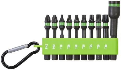 Luna Impact Bitset 10 delar är praktiskt och optimalt för användning med slag skruvdragare. Setet inkluderar de mest användbara verktygen i 10 delar och är utrustat med en praktisk karbinhake för enkel åtkomst och förvaring. Det har även en Impactfunktion som är speciellt utformad för användning med slag skruvdragare, med en fäststorlek på 1/4 tum.