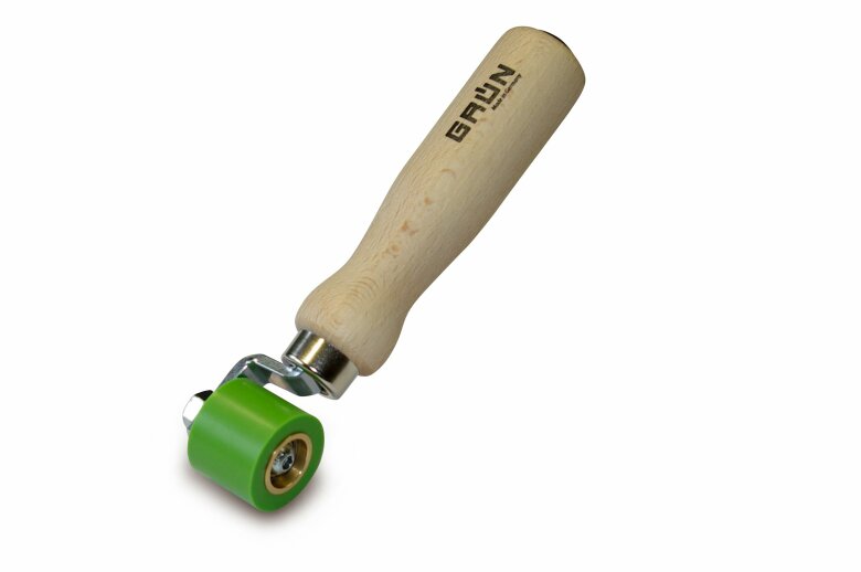 Rullen är utrustad med två smidigt löpande kullager, en skruvad axel och ett ergonomiskt trähandtag för maximalt tryck. Den är designad för överlappssvetsning på ena sidan, vilket gör den perfekt för olika svetsapplikationer.