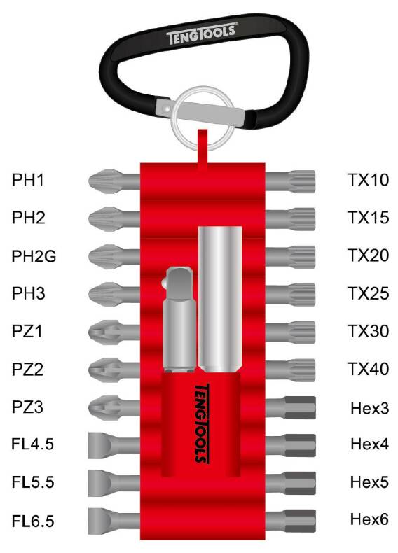 - Bits för TX-spår TX10, TX15, TX20, TX25, TX30, TX40
