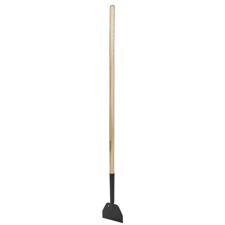 Fiskars is- och barkspade har ett blad av målat och härdat borstål samt ett trähandtag. Den är idealisk för att skrapa is eller barka timmer. Spadens bredd är 175 mm och total längd är 1475 mm. Tillverkad av stål och lackerad för att förbättra hållbarheten.