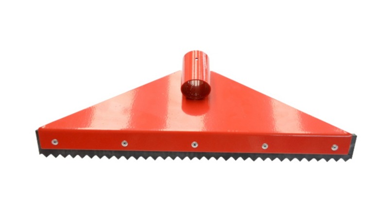 Ersättningskroppen med tandat gummispackel och förstärkning är speciellt utformad för effektiv spridning av mastik och lim vid kall installation av SBS-membran.