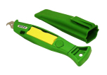 Herz Grön kniv är en robust kniv helt i metall som levereras med ett praktiskt plastfodral och 20 krokblad.