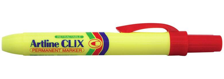Artline Clix märkpenna i rött förenar bekvämlighet med användarvänlighet. Med sin praktiska tryckmekanism undviker du risken att tappa bort pennhuven, och den robusta plastclipsen säkerställer enkel förvaring och åtkomst.