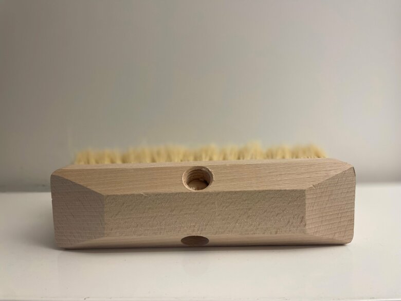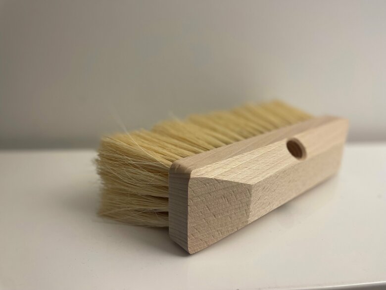 • En hornsugga med kraftiga naturborst och ett skaft av trä. Borsten har en tjo...