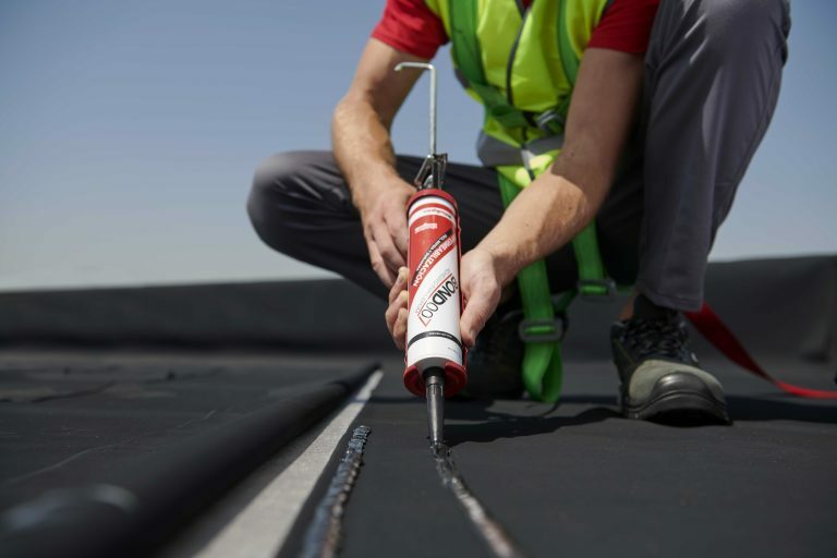 - Sammanfogning av Rollgum EPDM-membran och andra vanliga underlag som används inom byggsektorn, både vertikalt och horisontellt (betong, fibercement, tegel, aluminium, stål, metallkonstruktioner samt andra porösa och icke-porösa material).