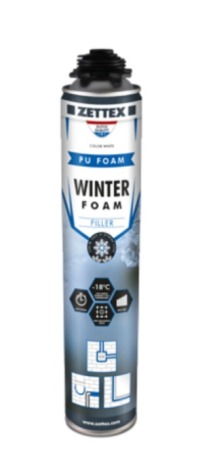 Zettex Winterfoam är ett hållbart och snabbhärdande enkomponents isolerings- och monteringsskum, särskilt utformat för tätning och fyllning av fogar, sömmar och anslutningar mellan byggnadselement. Detta skum är särskilt lämpligt för användning vid mycket låga temperaturer, ner till -30 °C, och härdar genom fuktpåverkan. Zettex Winterfoam erbjuder utmärkt vidhäftning till en mängd olika byggmaterial, inklusive sten, betong, metall och olika plaster såsom styropor, PU-rigidskum, polyester och hård PVC.