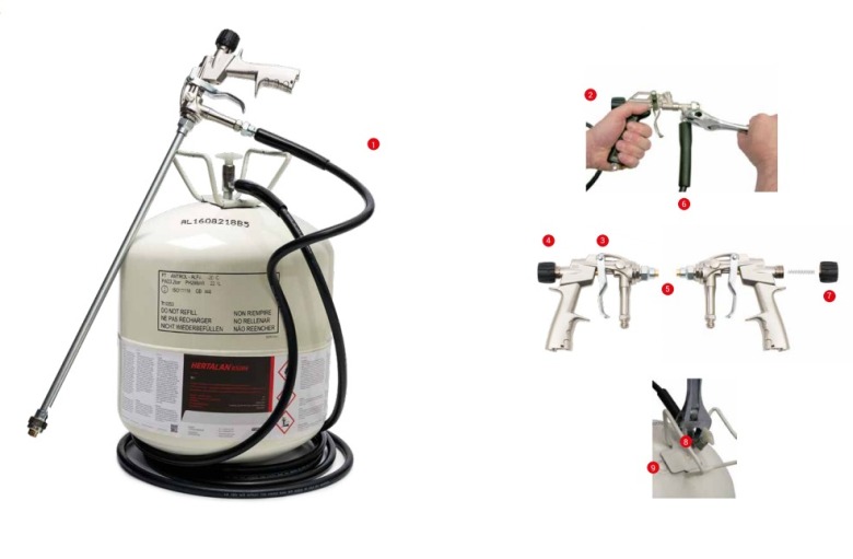 Tillsammans med antingen den 3,65 meter eller 5,50 meter långa slangen gör den det möjligt för smidig och snabb applicering av kontaktlimmet.