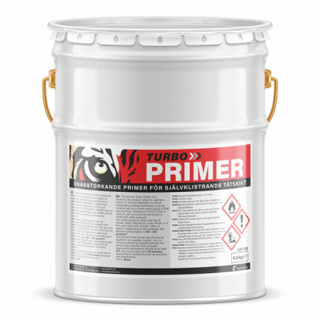 En universell och snabbtorkande primer för användning på de flesta ytor. Effektiv, snabb och enkel att använda, den fungerar utmärkt med de flesta självhäftande tätskikt, både bitumen- och EPDM-baserade, när dessa fästs på underlaget. Perfekt även för applicering av EPDM-remsor för tätning av skarvar och liknande. Turbo Primer är tillverkad av syntetisk gummikåda och lösningsmedel.